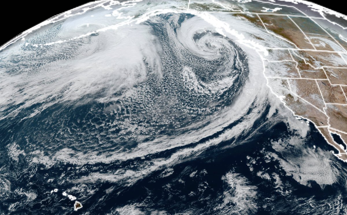 A bomb cyclone is reportedly expected to descend upon the West Coast. It drops at least 24 mb a unit of pressure in 24 hours. Collision between two air masses one warm and one cold and that sets up currents of air that develop into sort of a rotating storm-like pattern.